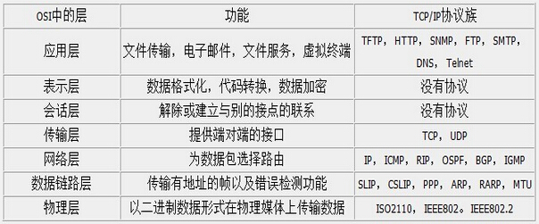 在OSI七层模型中,每一层的作用和对应的协议如下: