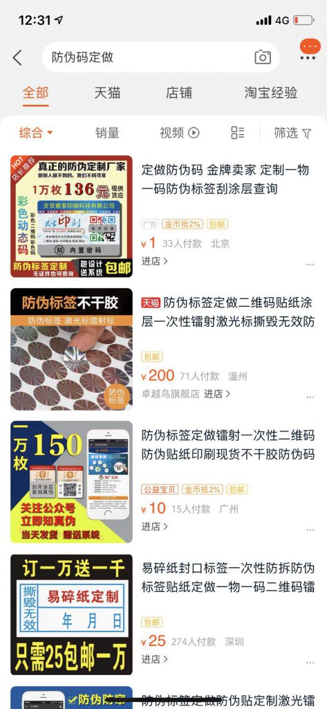 洋葱资料 关于防伪码的讨论 即使是在中国,是所有商品都有防伪码吗? 防伪码只是很多种防伪技术中的人一种,现在最普遍的是扫一扫的二维码,或者是数字序列到网站去查 但这些防伪技术尤其防伪码本身也是可以被假冒的,某宝一搜防伪码,多的是商家 … 4月 22, 2019 0条评论 2,050次阅读 0人点赞 阅读全文
